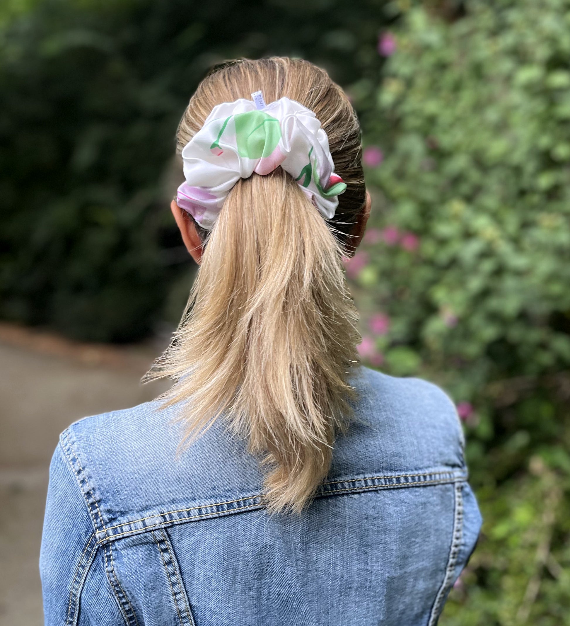 NB. Our scrunchies are individually handmade, so slight variations in pattern placement and size may occur. These variations make each item unique and do not affect its quality.