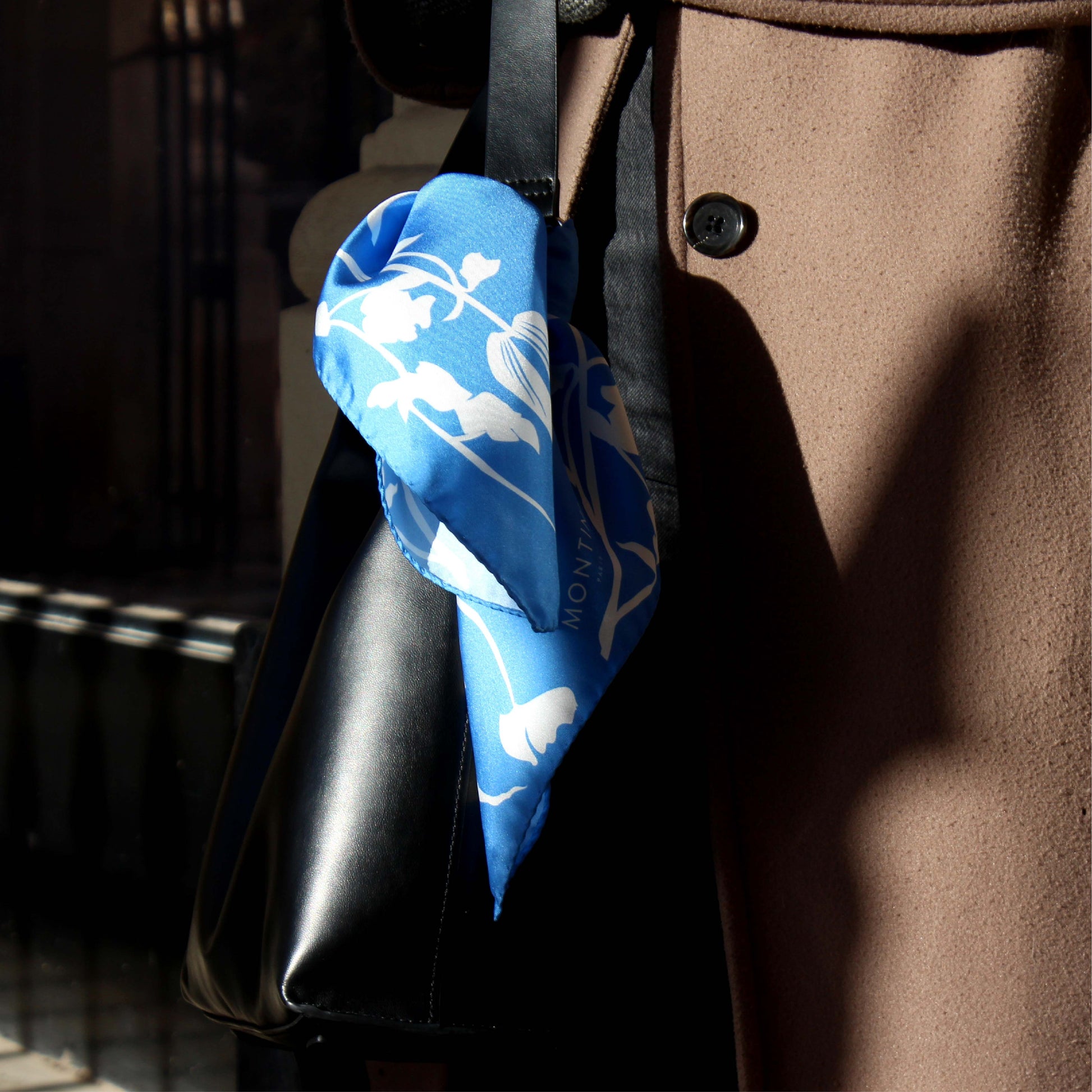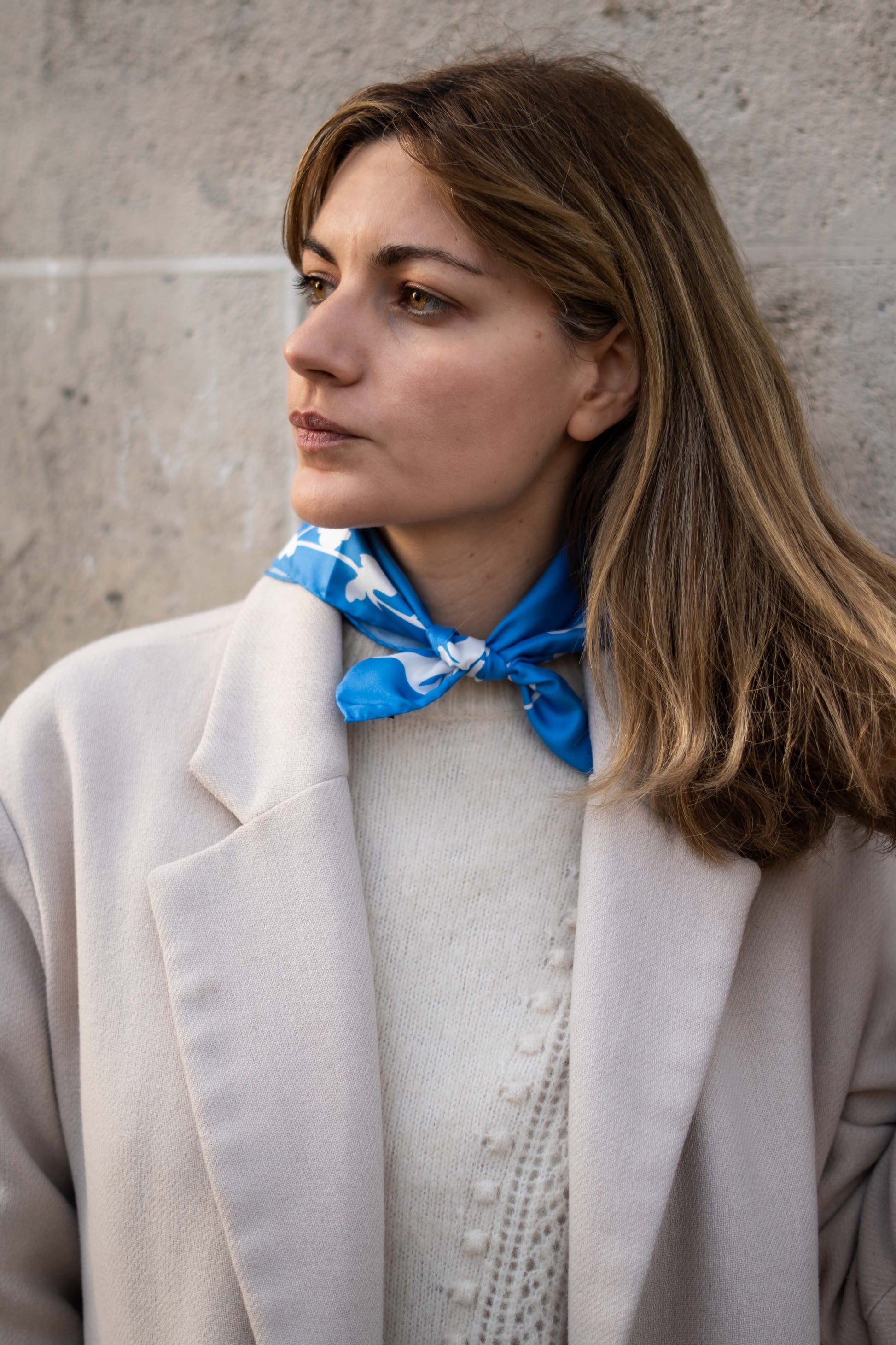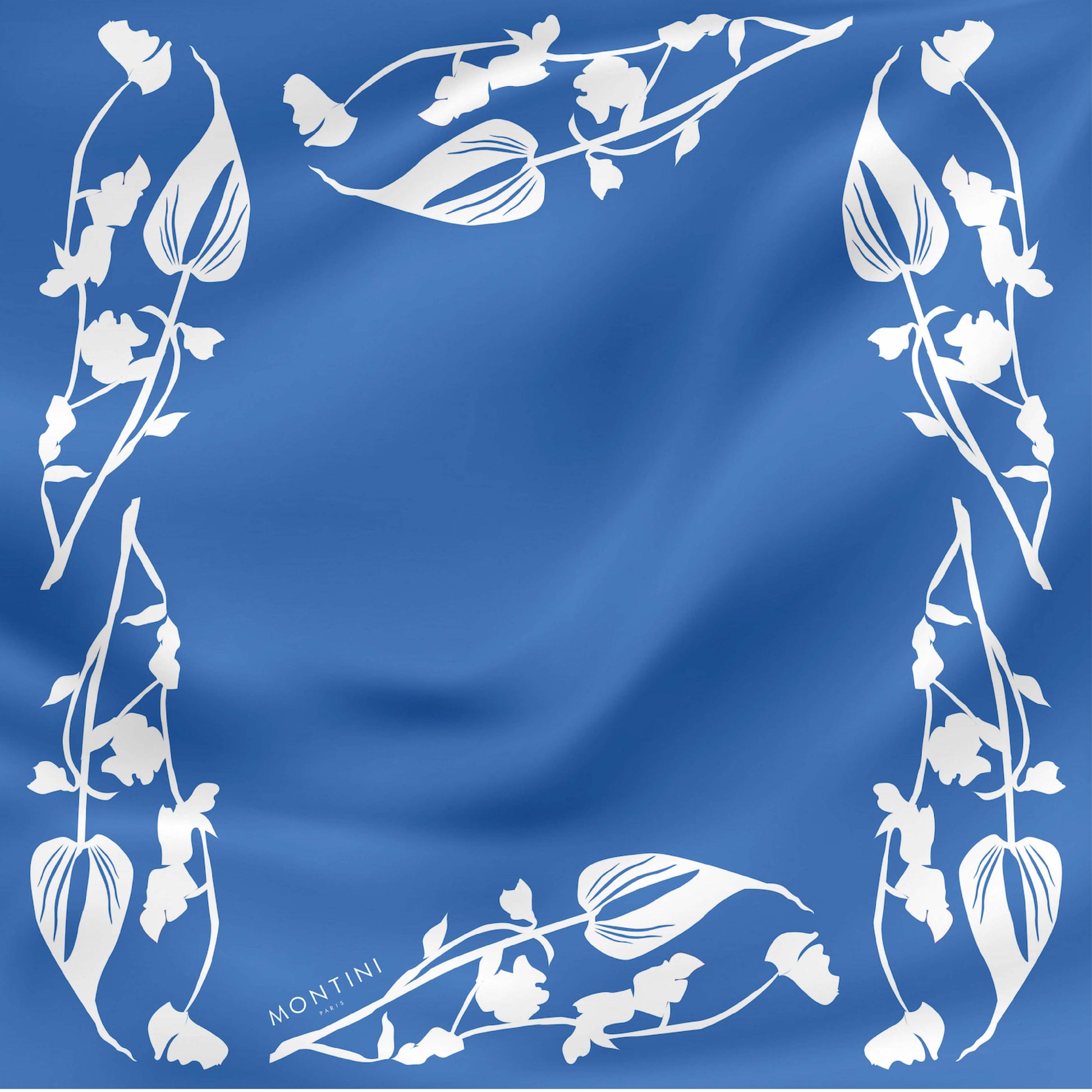 Les fleurs d'hiver se posent légères sur la soie. Anthurium et Pois de Senteur, ces nouvelles fleurs qu'on retrouve stylisées, peintes d'abord à la main, et qui ornent avec leur géométries les nouveaux carrés.