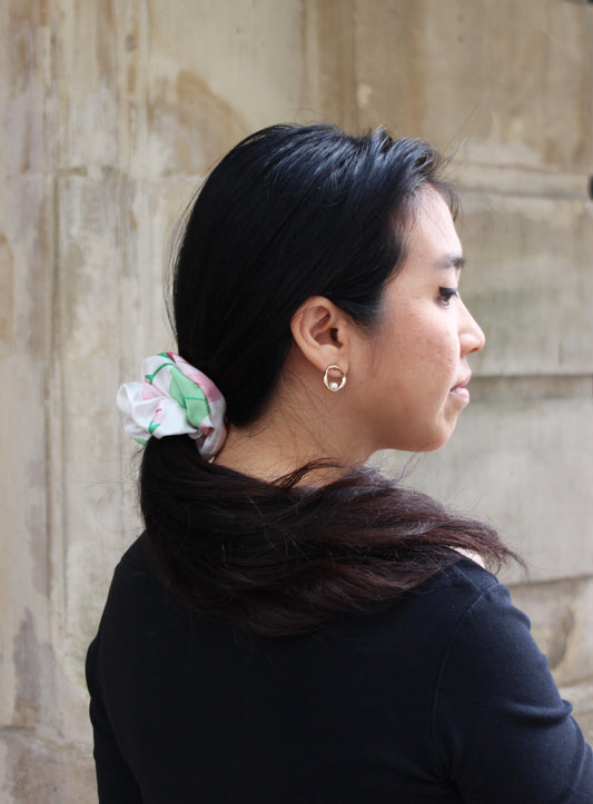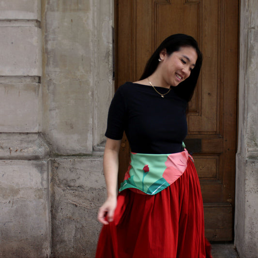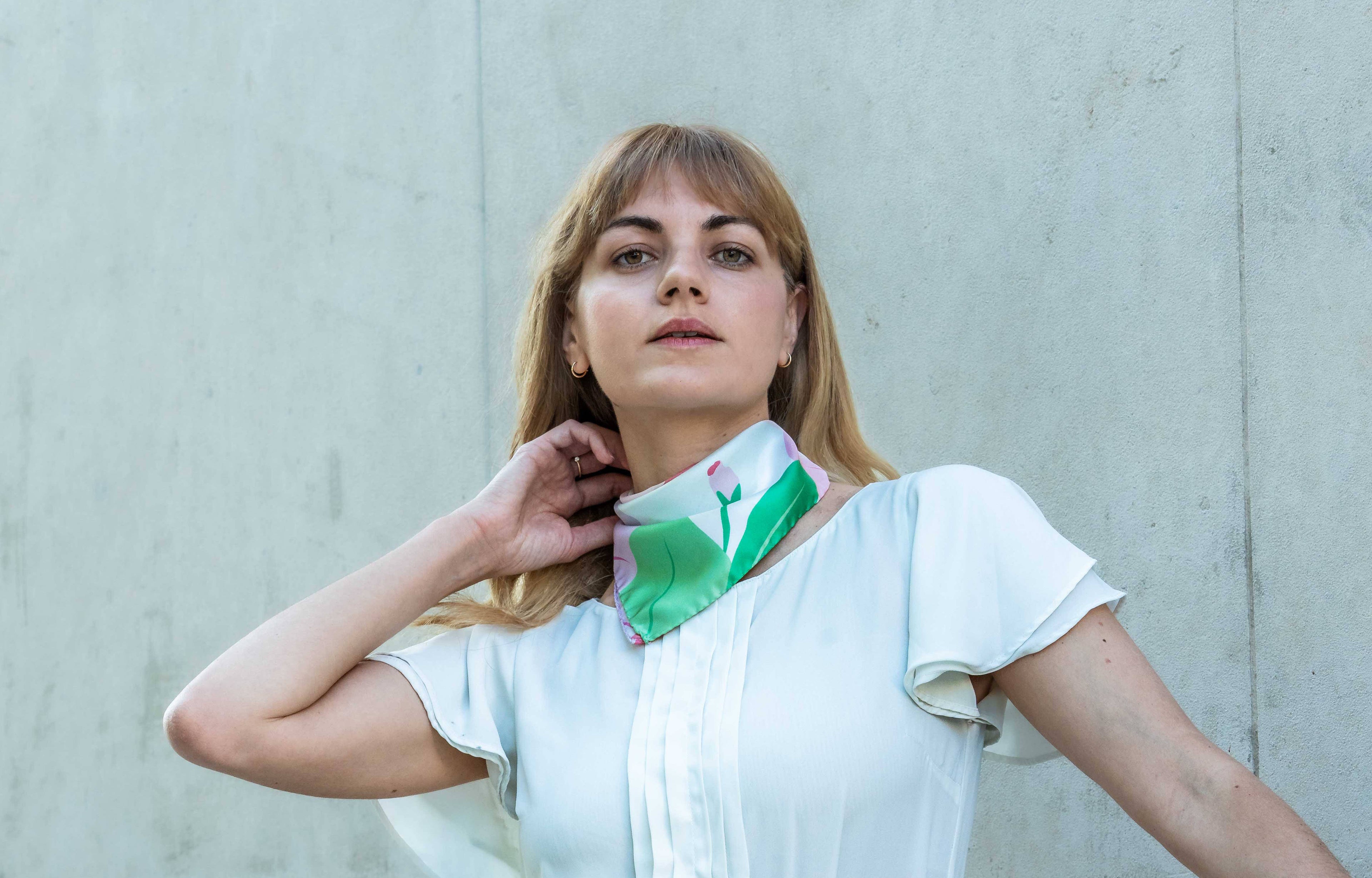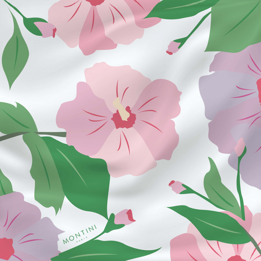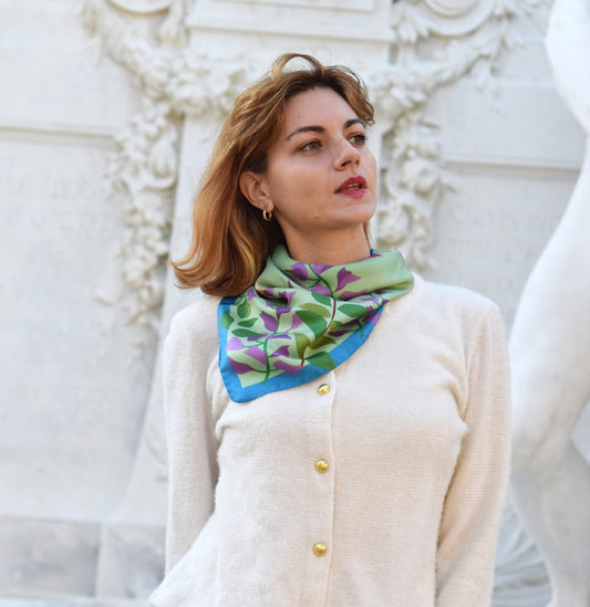 Foulards et accessoires en soie dessinés à Paris, fabriqués entre Italie et France. Des motifs floraux et modernes qui transforment chaque pièce en un véritable bouquet à porter.